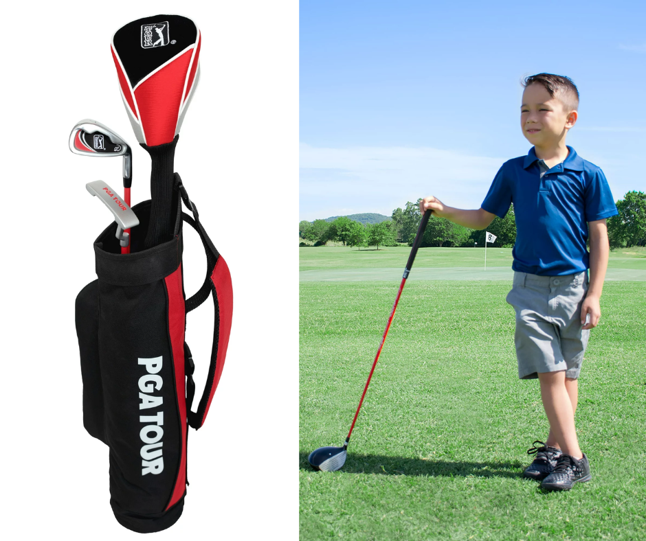 This kids’ golf club by the PGA is available at Walmart in stores and online. The G1 Series set includes everything a kid needs to take their first swing at the game of golf or continue to build their skills on the course.