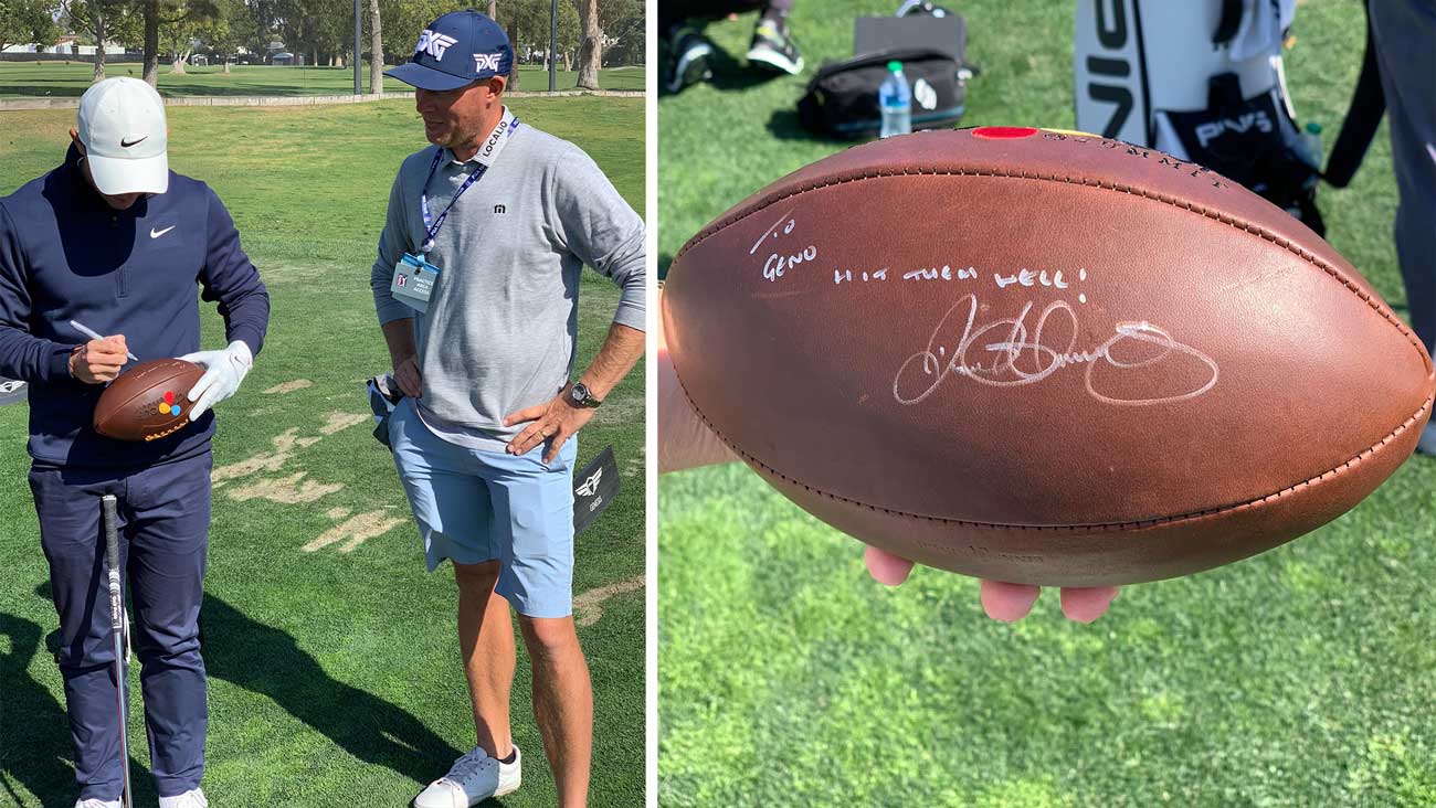 The week of the Genesis Invitational was pivotal for the future of the professional game. That was the week the Phil comments came out, the week the LIV thing became real, the week pros started choosing sides, the week it all began to play out in public. But one thing that also happened that week was Joel Dahmen’s caddie, Geno Bonnalie, flagging down Rory McIlroy on the range to autograph his CJ Cup football. A CJ Cup football! Even though the drama surrounding pro golf has heightened, most of the day-to-day is still pleasant and mundane. Sharpies and ranges and memorabilia. Also — loopy signature! — Dylan Dethier