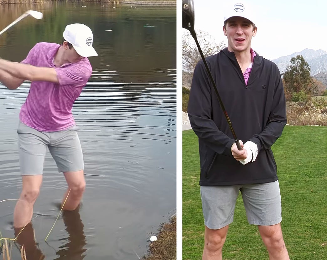 Naturally, after a few months of consistent posting and a couple of posts going viral, his golf audience grew exponentially. For example, this video below of him absolutely pureing a shot using a backward lefty club at Topgolf went crazy last October.