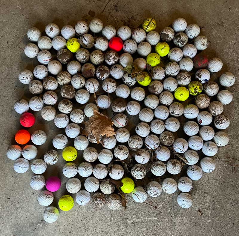 The next day brought the really fun part: taking inventory. I was tasked with that job and reveled in it. I dumped our catch on my garage floor and started counting: 154 balls! Some were in excellent condition, a few were cracked, many were caked in dried dirt.
