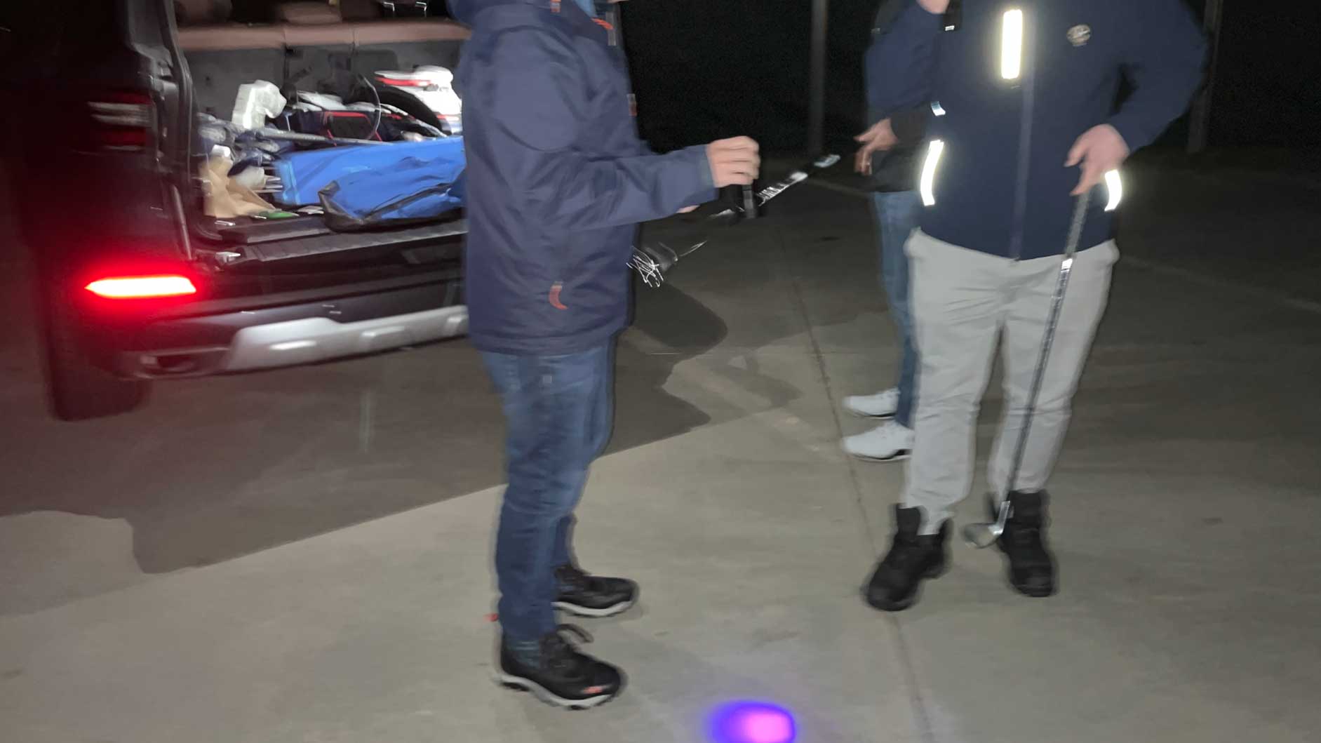 That’s 171 sleeves! Scott was inspired, and when he shared his findings with his suburban New Jersey golf buddies — Dan, Matt and me — we didn’t take long to fall into line. None of us had heard of the practice. Heck, none of us had heard of a UV flashlight. The device looks just like any old torch but emits ultraviolet radiation — aka black light — that is useful for detecting certain substances and objects in the darkness otherwise undetectable to the naked eye, from saliva and scorpions to olive oil and rock salt to … yep, golf balls. When the UV light catches the orbs, they fluoresce like comets in the night sky.
