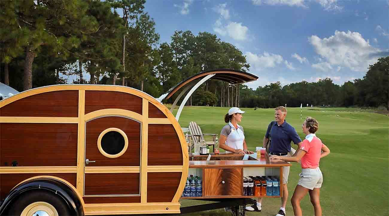 As simple as it is refreshing, this cocktail is served from a vintage beverage cart called the Pinecone, on the property’s short course, the Cradle.