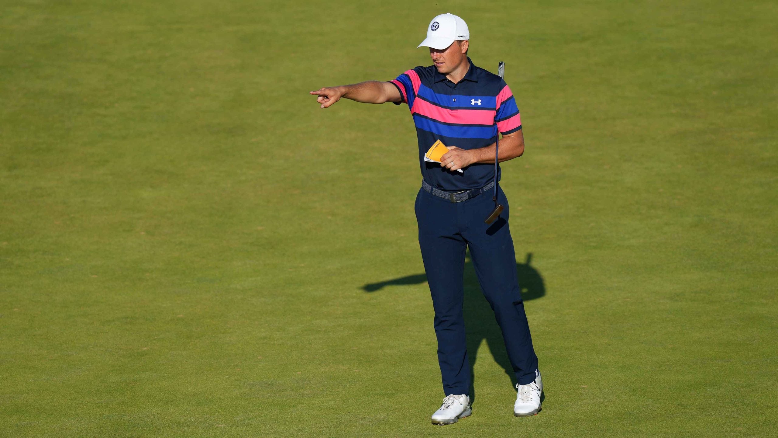 Jordan Spieth was in the penultimate twosome. After the missed shorty at the end of his Saturday, a l-o-n-g wait, to “on the tee, from the U.S.A.” and his 2:25 p.m. start. Then the final twosome 10 minutes later: Collin Morikawa, two shots ahead of Spieth, and Louis Oosthuizen, your 54-hole leader, a shot ahead of Morikawa.