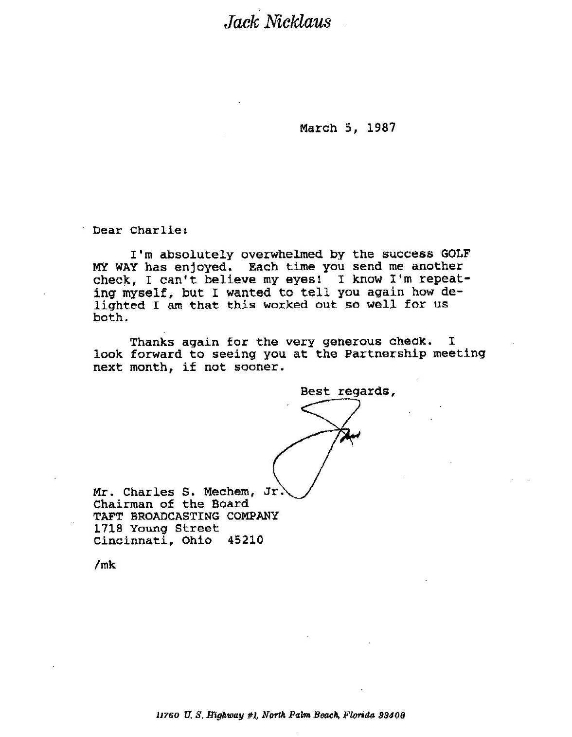 As the years passed by, my involvement with Jack — and my company’s involvement with Jack — increased. One of our most notable accomplishments was producing the video version of Jack’s iconic book, Golf My Way.