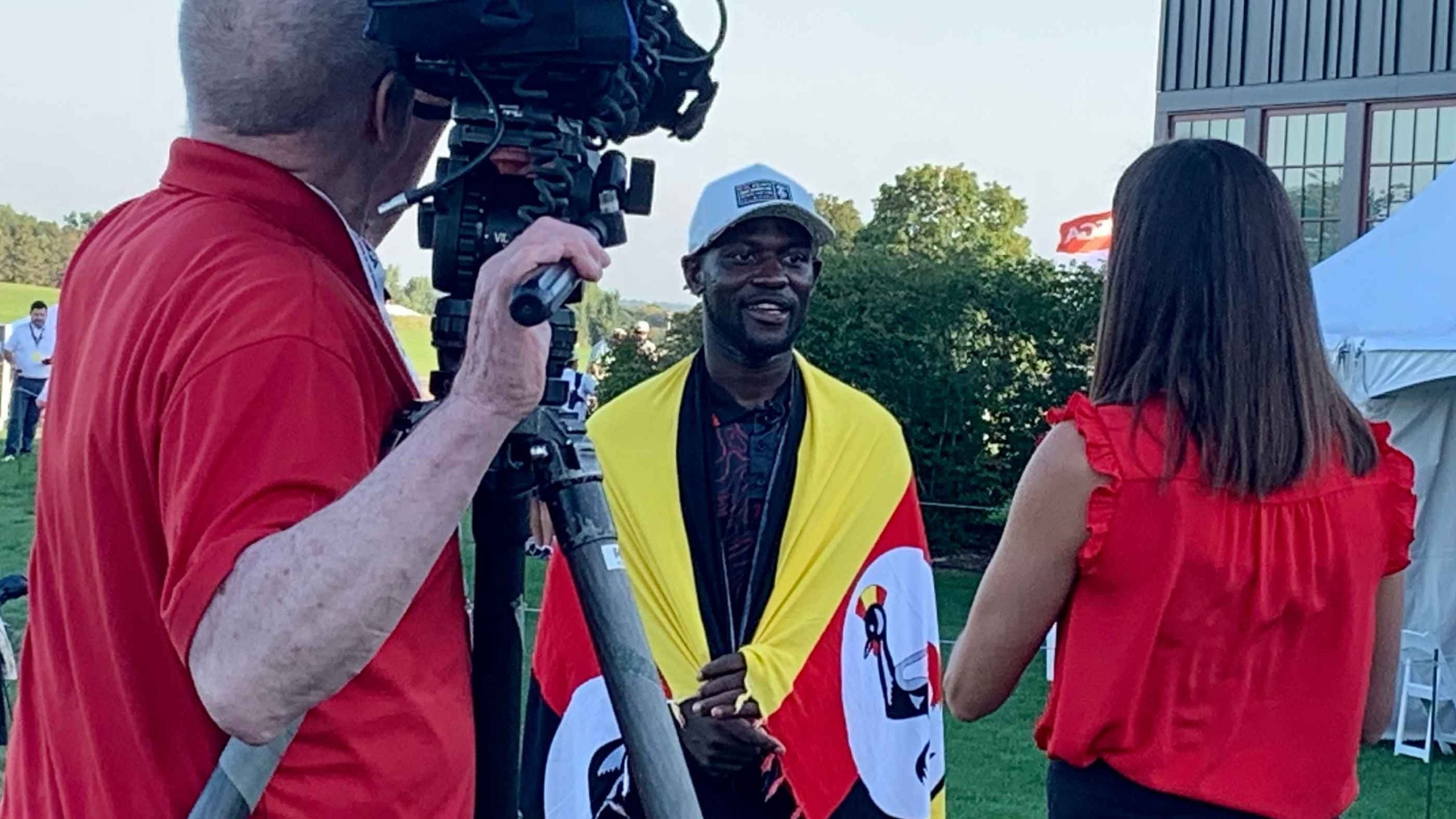 This is Godfrey Nsubuga, draped with a Uganda flag blanket, talking to a local news crew after the first round of the U.S. Amateur this summer. He became the first player to represent Uganda in the event, and it was the culmination of a long journey that started by learning the game with golf clubs made out of Eucalyptus trees. He didn’t make it out of the stroke-play session, but storylines like this are one of the many reasons the U.S. Amateur is such a wonderful event. — Josh Berhow