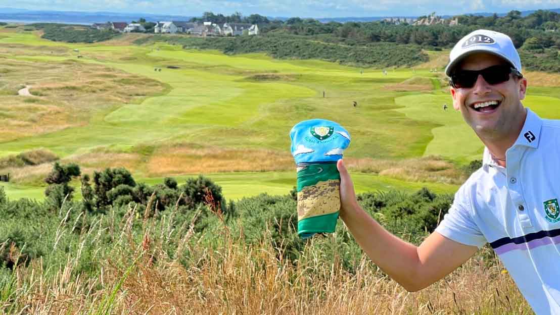 My dad and I have made an annual pilgrimage to Dornoch, in the Scottish Highlands, the last few years and this spot on the 7th tee, looking back over the links has become possibly my favorite spot on earth. This year, the club released a custom Dormie Workshop headcover depicting the image. Knowing I would never buy it for myself, I jokingly sent a picture of the headcover to my amazing girlfriend, who then immediately conspired with my dad to gift it to me for my birthday two months later. — Jack Hirsh