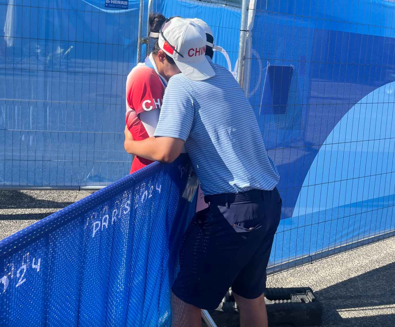 Snapped this one right before the TV cameras arrived. It’s Janet Lin, sobbing at the Paris Olympics with her face buried into the shoulder of her fiance. She had just found out that she was guaranteed third place and a bronze medal for China. It’s the only event all year where third place feels like that, and I was lucky to see the joy unfold just steps away. — Sean Zak