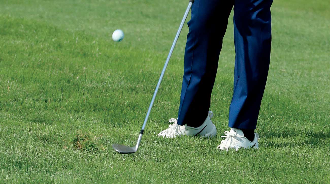 Check out Tommy’s right shoulder — it’s moving down toward the ball. This all but assures crisp wedge or short-iron contact. Some players get their right shoulders trapped behind them on the downswing. Not good. Keep turning your torso and you’ll be money.