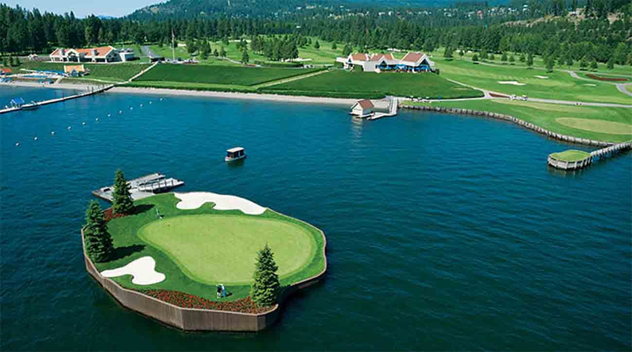 Coeur d’Alene’s enchanting 14th beckons with a 15,000-square-foot green framed by red geraniums, two bunkers, a few conifers — and is completely encircled by one of North America’s most beautiful lakes. No strips of land here, just a floating island green that’s reachable only by a six-passenger boat. Hit the green and two-putt for par and you earn an award certificate on the ride back.