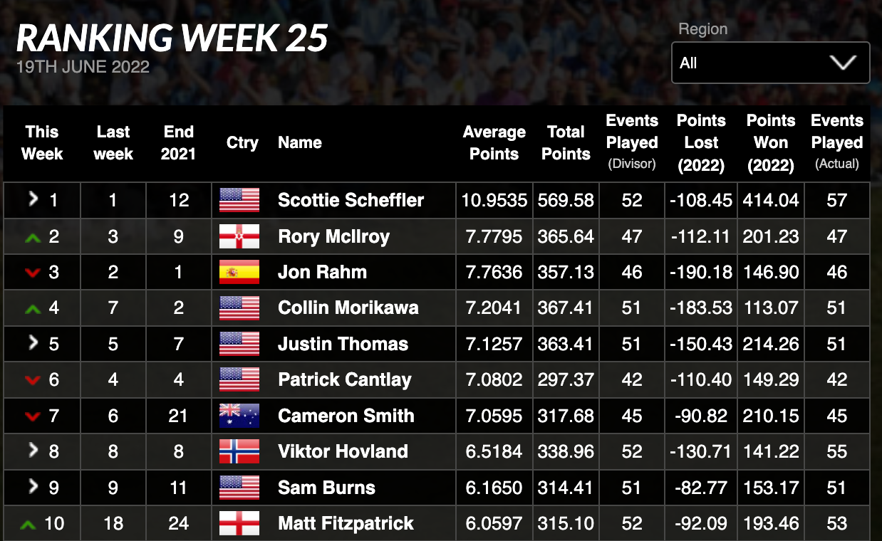 For more of this backstory, you can visit the OWGR website, which lays out the origins and evolution of the ranking. While you’re on the site, you can also learn about the math behind the system — how points are allocated to events by calculating their strength of field.