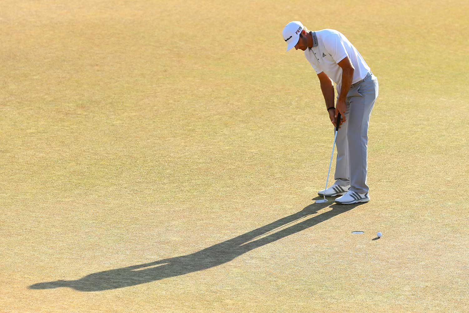 Dustin Johnson, majorless at the time, had an eagle putt to win on the 72nd hole of the 2015 Open at Chambers Bay, but it didn’t fall. Then came the heartbreaker. He missed a short birdie putt coming back, tapped in for par, and lost to Spieth by one.