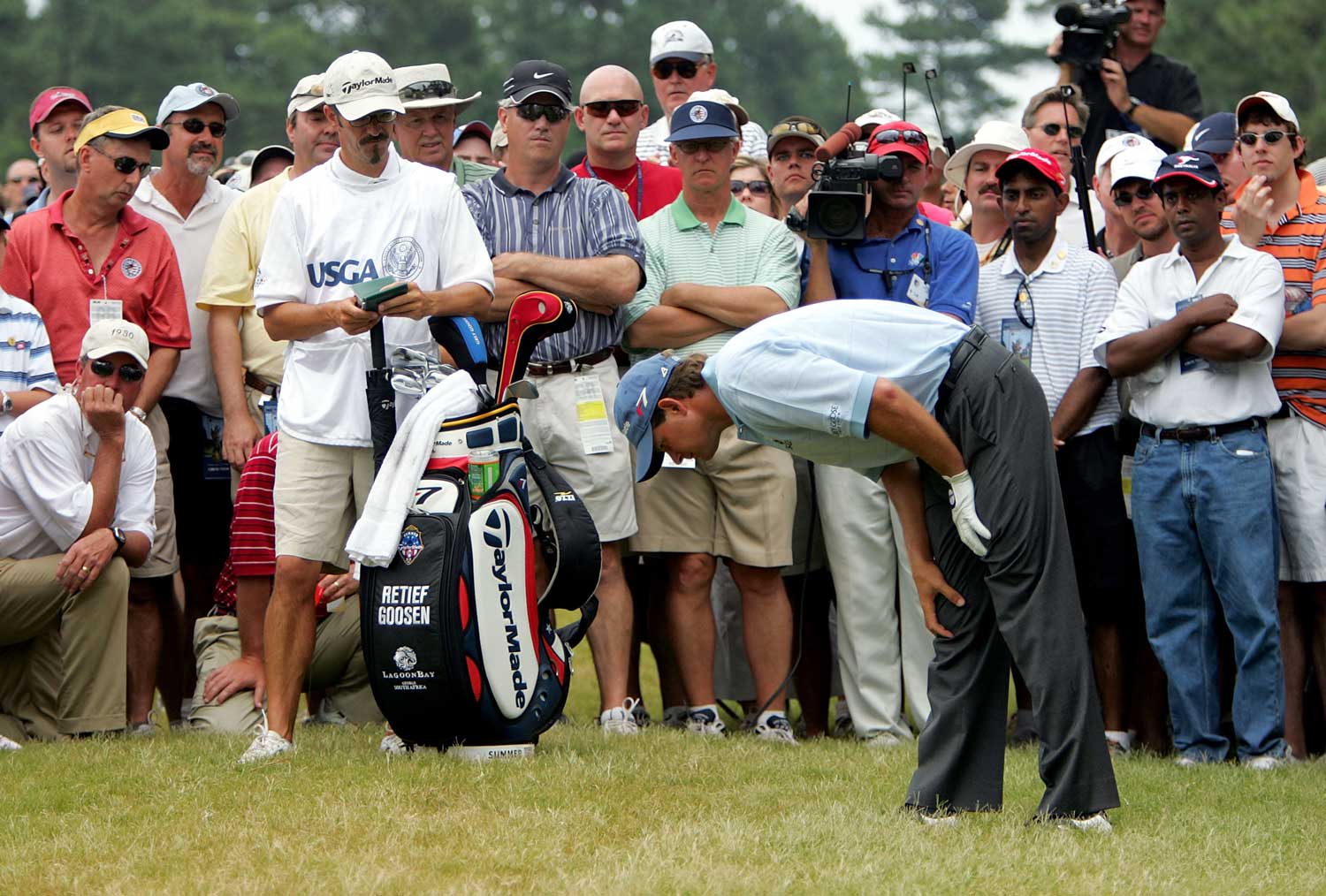 Retief Goosen led the 2005 U.S. Open at Pinehurst by three after 54 holes, and Jason Gore was tied for second at even par. Then came the final round. Goosen fell apart before he made the turn and shot 81. Gore finished 14 over in his final round for an 84. Neither finished in the top 10, and Gore dropped all the way to T49. Michael Campbell beat Tiger Woods by two to win.