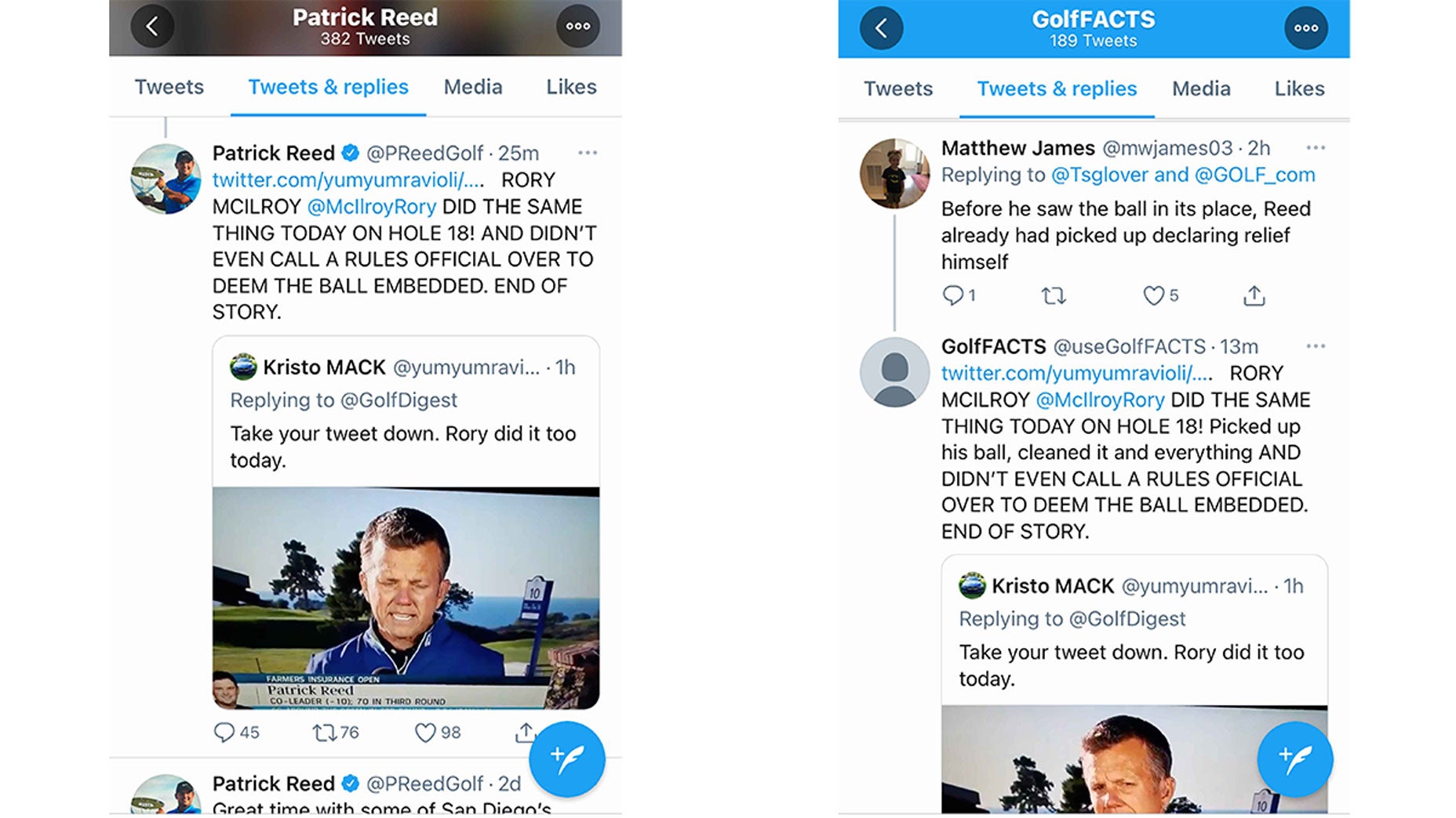 And then he explained himself on Twitter — or at least whoever manages Reed’s certified Twitter account did so — by comparing Reed’s latest rules kerfuffle, during Saturday’s third round of the Farmers Insurance Open, to a similar situation involving Rory Mcllroy.