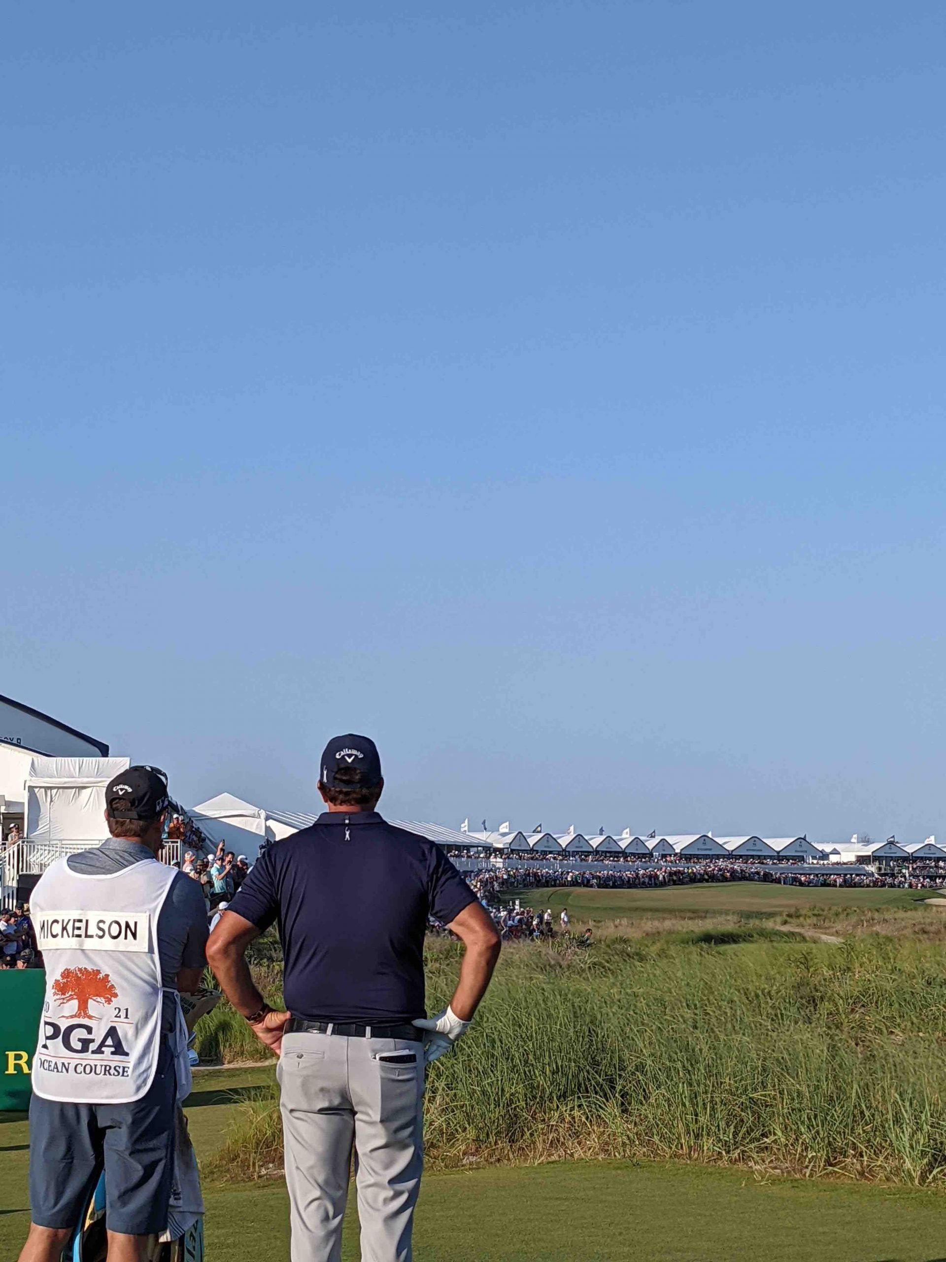 Trying to stay within one-arm’s length of a rope that no longer existed, I had walked up the fairway behind Mickelson and his caddie, Tim, but I had meandered my way over to Koepka by this point. I thought the crowd would be more interested in sticking to Mickelson and therefore give Koepka (and myself) some breathing room. I didn’t realize that at this point, they had forgotten about Koepka, the four-time major champ, altogether.