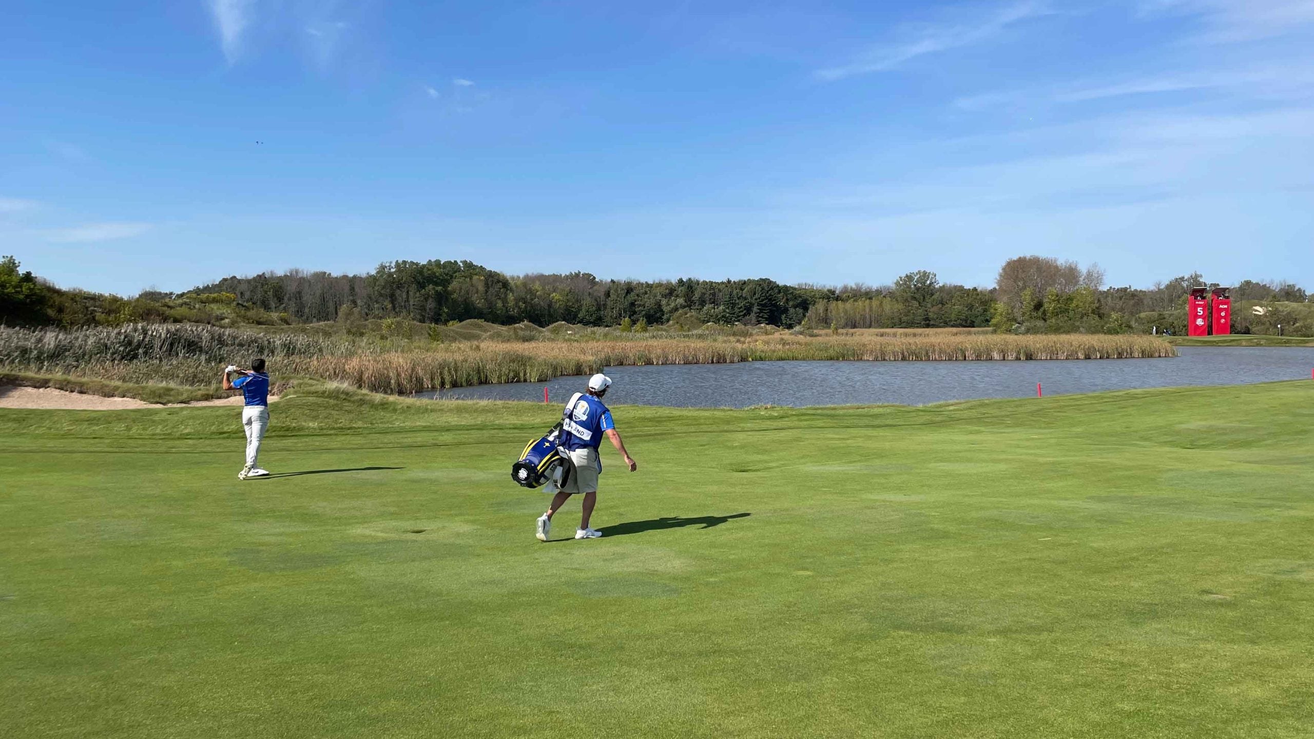 But as the match progressed down the rugged coast to the par-3 3rd, the par-4 4th and to the southernmost point of the property — the tucked-away back tee at the par-5 5th — a strange thing happened. This Ryder Cup started to feel more like a Walker Cup. No grandstands, no scoreboards, no head-rattling roars, partly because of the sound-muffling wind howling off the lake and partly because on this part of the course there’s just no good place for fans to follow the action.