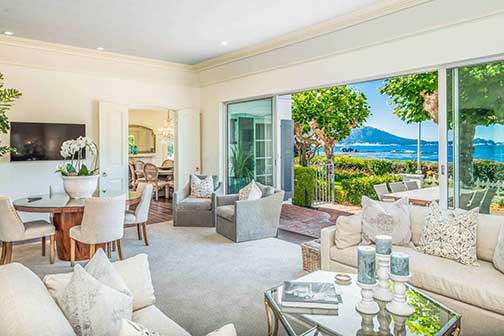 This 3,800 square foot home can sleep up to 14 people, making it an ideal stay for large groups. It has panoramic ocean views and offers a sneak peak of both Cypress Point and Spyglass Hill.