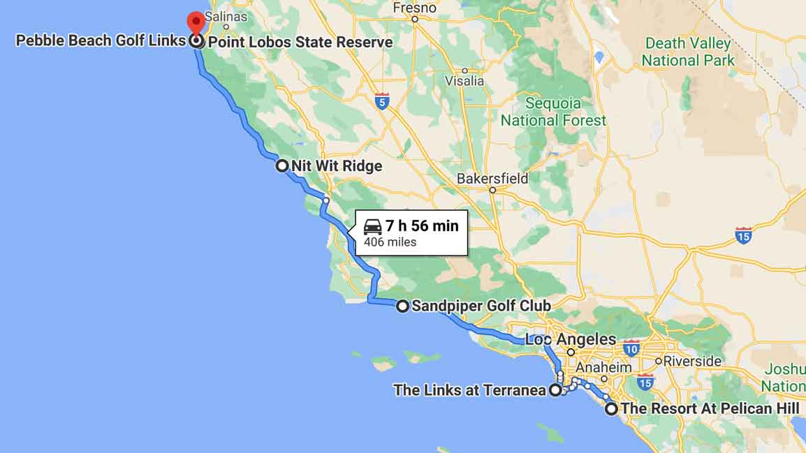 End point: Pebble Beach Golf Links, Pebble Beach, Calif.