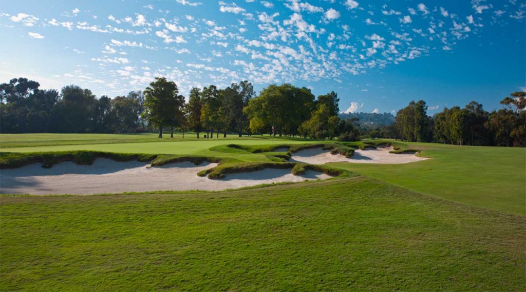 The value that an architect provides is highlighted here in technicolor. Built in a narrow canyon, there was no reason to hold high hopes for this course. Yet what emerged, courtesy of George Thomas and Billy Bell, is one of the game’s strategic design marvels. Together, the designers took bunker configuration and angled greens to new heights in the 1920s. As proof of their magical skills, look no further than Riv’s 311-yard, par-4 10th. Thanks to the inspired positioning of the bunkers and the angled green, options abound on how to card a big number on this tiny hole. Thomas’s famous quote — “strategy is the soul of the game” — manifests itself at Riv. (Photo: Patrick Koenig)