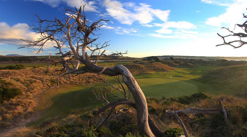 Australia’s greatest links continually achieves top-40 status thanks to a sophisticated design coupled with a stirring seaside setting with holes nestled in large dunes that run parallel to the ocean. The clubhouse is situated in the middle, with each nine fanning out on either side. The dunes extend inland “only” some 350 yards and the architects did a fabulous job in having the holes flow across them in every conceivable manner. One highlight is the short 7th, which is the Southern Hemisphere’s equivalent to the Troon’s Postage Stamp hole and is equally adept at wreaking havoc. One of its tricks? Its abrupt change in direction from any previous holes means golfers don’t have a good read on how the wind will affect their tee balls. (Photo: Gary Lisbon)