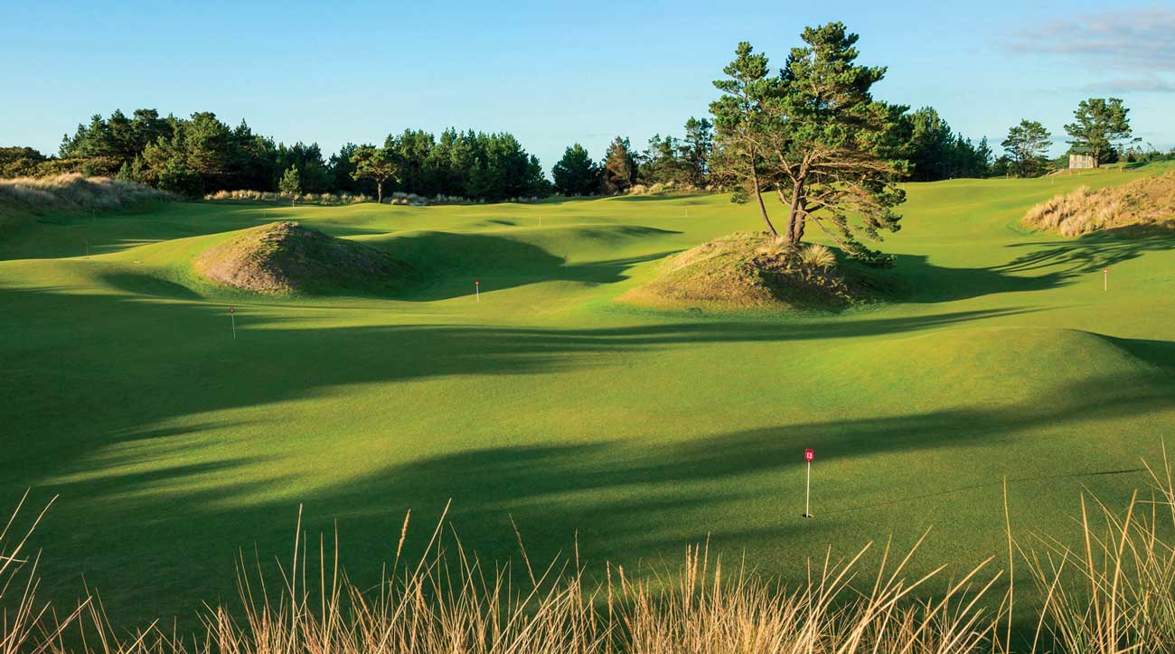 Bandon’s fourth course, Old Macdonald, takes its name from the famed American architect C.B. Macdonald, but credit for the 2010 design goes to Jim Urbina and Tom Doak. A layout that looks relatively flat from afar reveals itself up close to be a wonderland of intriguing folds and hollows, with wild, expansive greens that grow all the more befuddling when the wind picks up. In a nod to its throwback inspiration, the course is also notable for a string of template features, including a Redan hole, a Biarritz hole and a par 4 patterned on the Road Hole at St. Andrews.