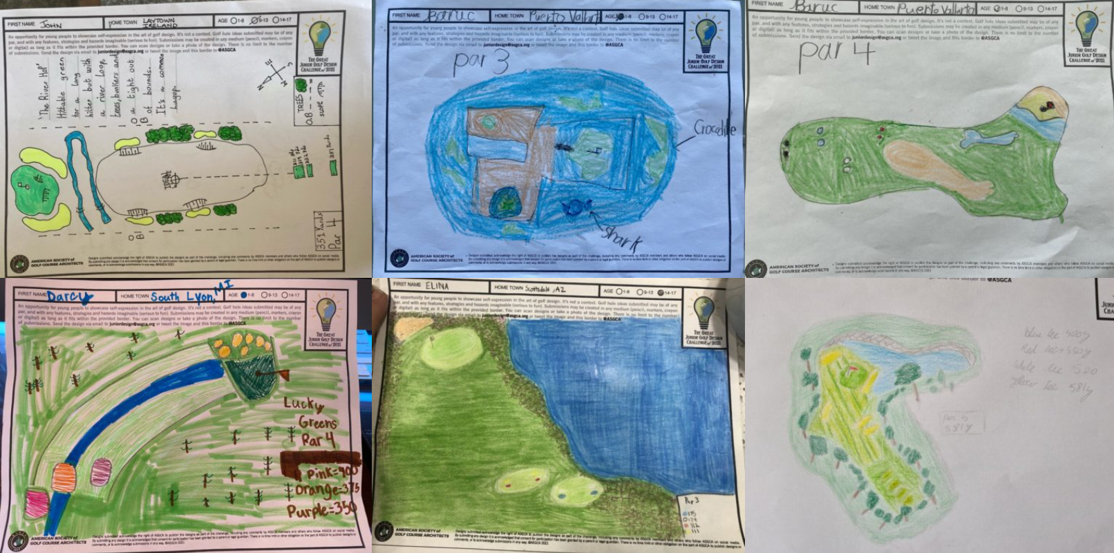 Sponsored by the American Society of Golf Course Architects (ASGCA), the contest solicited submissions from candidates age 17 and under for design ideas for “golf holes of any par, style or strategy, and from whimsical to serious.”