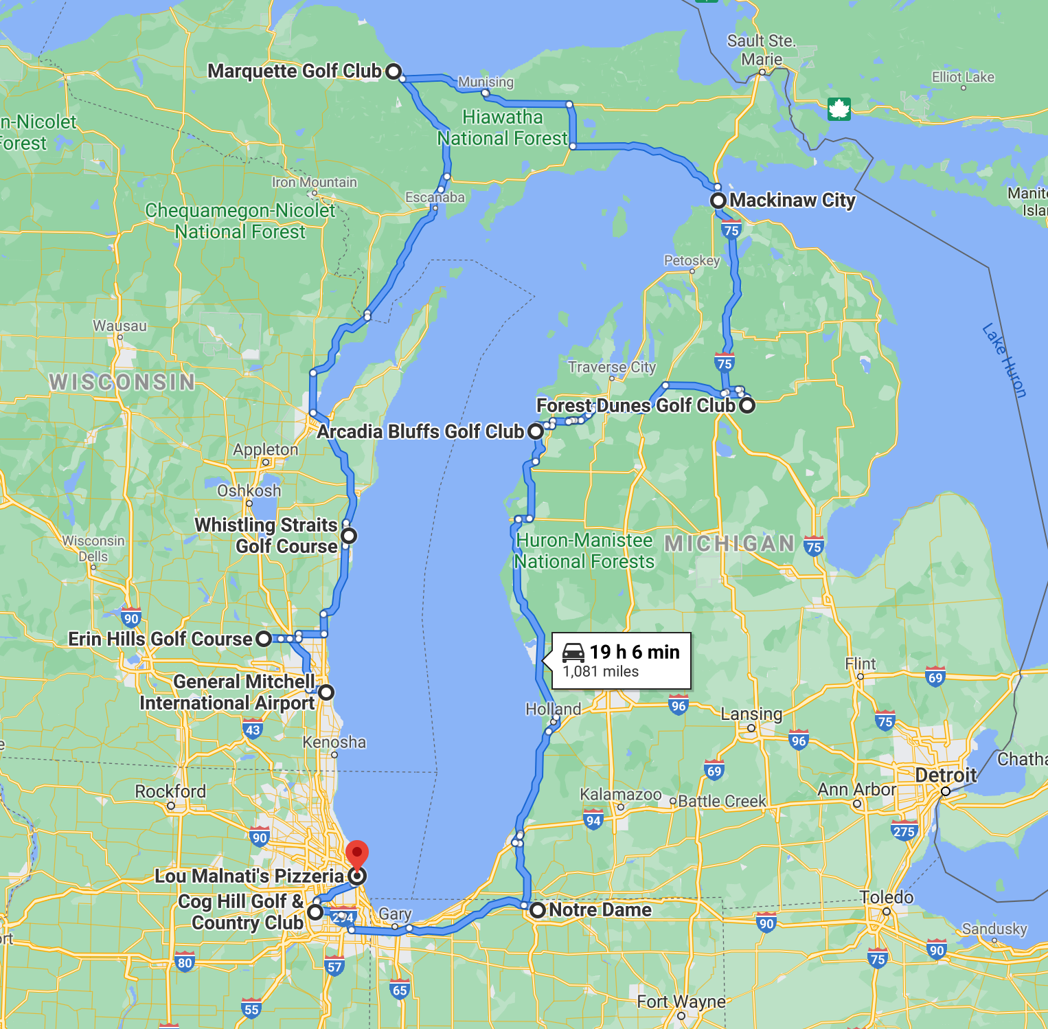 The 2021 Ryder Cup host has one of the best finishing stretches in golf, with a par-5, a par-3 and a brutally tough par-4 to close out the Wisconsin portion of your trip. Card an aggregate 12 through those holes and you can feel free to write home about it. As for lodging, book a hotel up in Green Bay (just an hour north) near Lambeau Field and take a tour of one of football’s most hallowed grounds. They’ll even let you onto the field, where if you listen closely you’ll hear Coach Lombardi berating you for that double-bogey on 18.