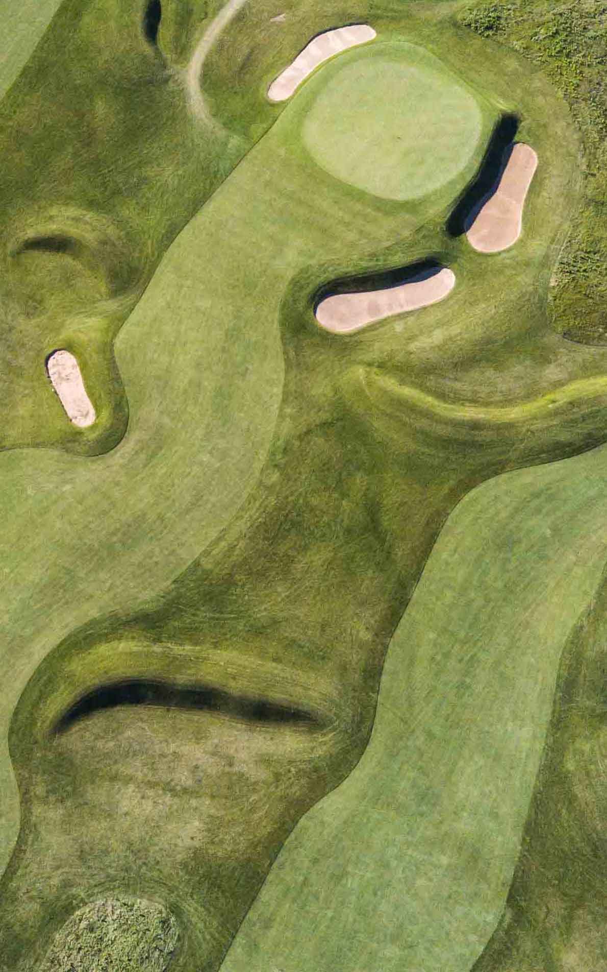 A bright spot for Midwest golfers last year came in the form of this course opening on IU’s Bloomington campus. Rave reviews quickly followed for a design that features tree-lined fairways on the more secluded front side and a wide-open feel on the back. Named for a major donor to the project, the course can extend to a meaty 7,908 yards (leave that for the college team!), but every green, save the 18th , accepts run-up shots. There are nearly 150 bunkers — the sharp dogleg-right 14th, the shortest par-4 on the course, has 10 alone on the right side of fairway — but architect Steve Smyers gives you a respite on the sand-free par-4 5th and 6th.